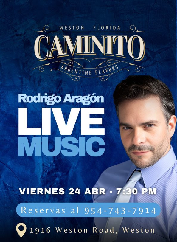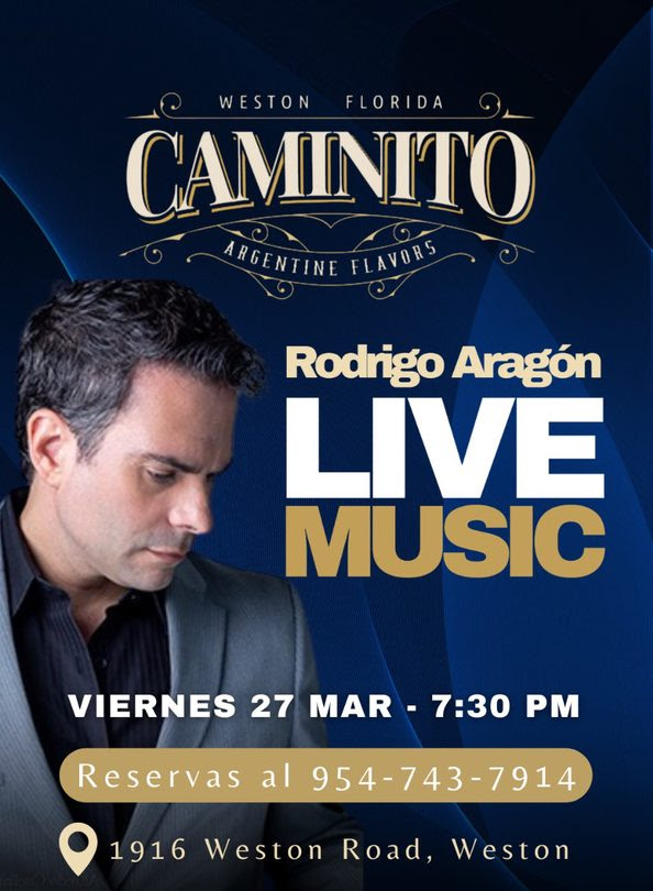 Enjoy a special night with Rodrigo Aragon and his live music and joy. / Vivi una noche especial con la música en vivo de Rodrigo Aragón, su show y las mejores canciones.
